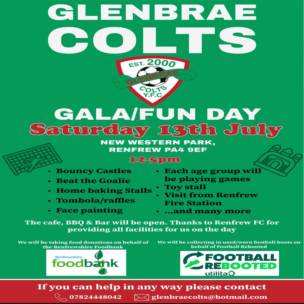 Only 1 week to go now til our inaugural Gala/Fun Day at Glenbrae colts 2016 YFC. We have loads of fun games and challenges for all the family.